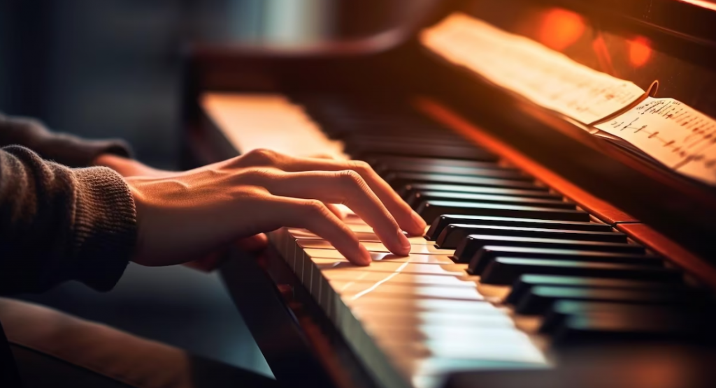Shënimet rezonojnë nga gishtat e tij, të shkrepura me dashuri nga afër, ndonjëherë ngadalë, një shënim i zhytur në mendime në të njëjtën kohë.