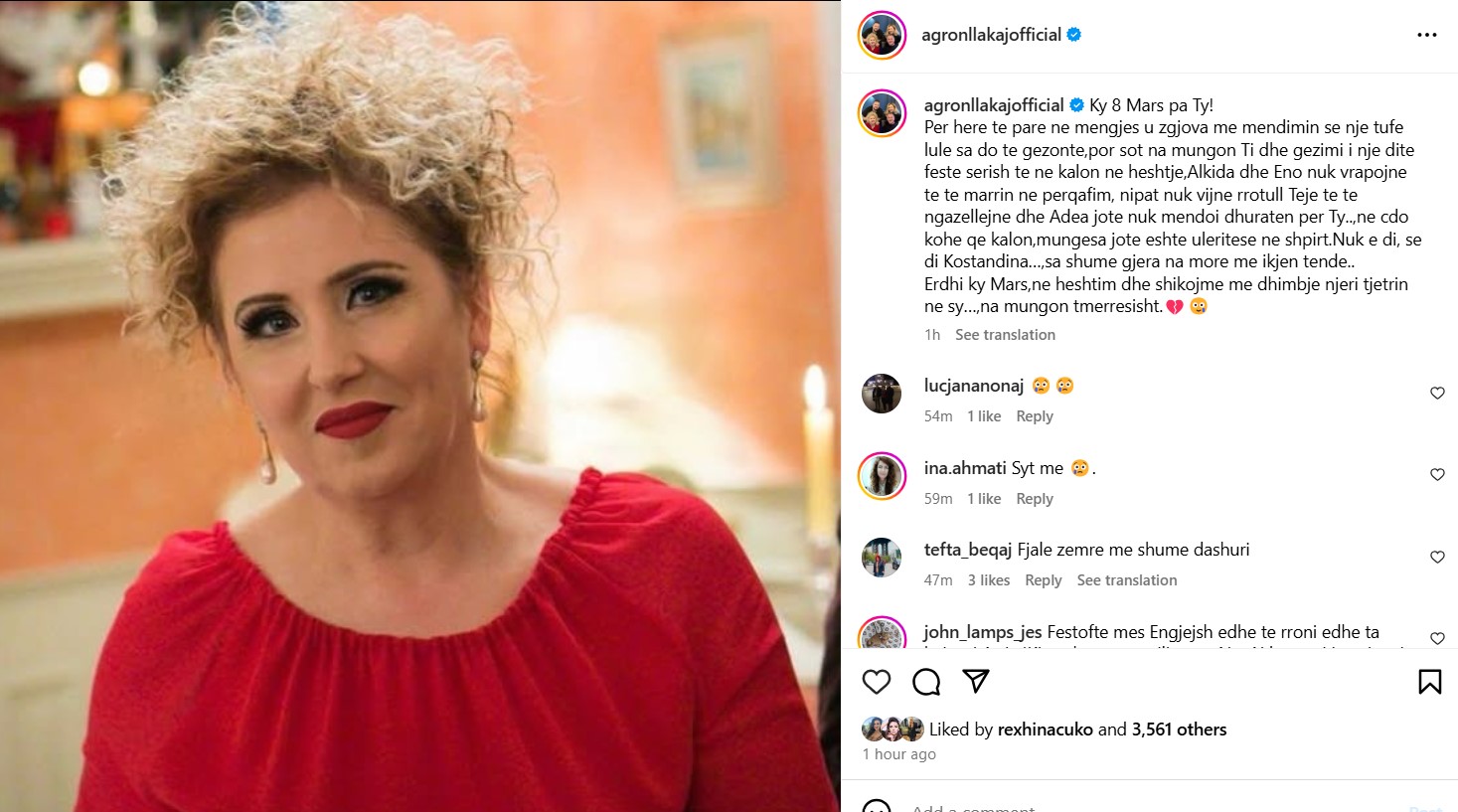 Agroni në ditën e 8 Marsit i ka dedikuar disa fjalë të ndjera partneres së jetës.